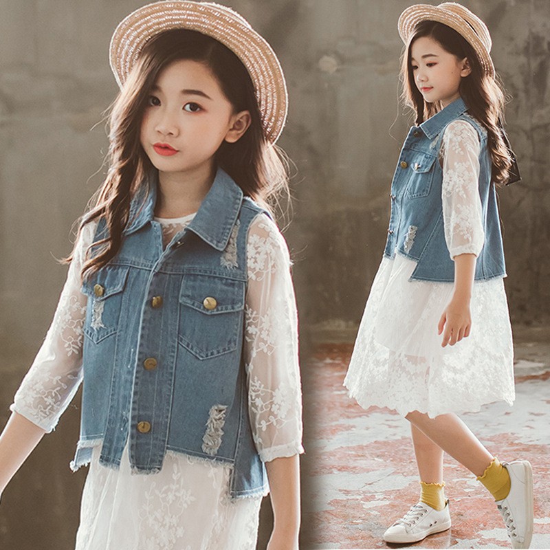 Fashion 2019 Spring Summer Kids Denim Broken Hole Vests For Teenage Girls Jeans Sleeveless Coats Kid
