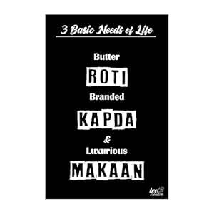 Bee Creative Wall Art Funny Quotes Roti Kapda Makaan Quoted Quirky Humour Poster Paper 12 X 18 Inch Multicolour